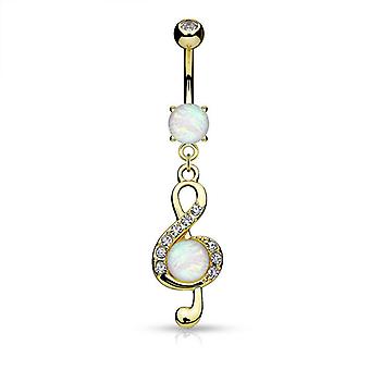 Treble clef design dangling 14ga belly ring with opal glitter stones