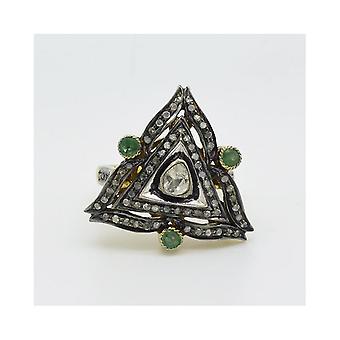 Tricolor Silver Ring With Colombian Emerald, 1 Large Diamond And 73 Small Diamonds awo13