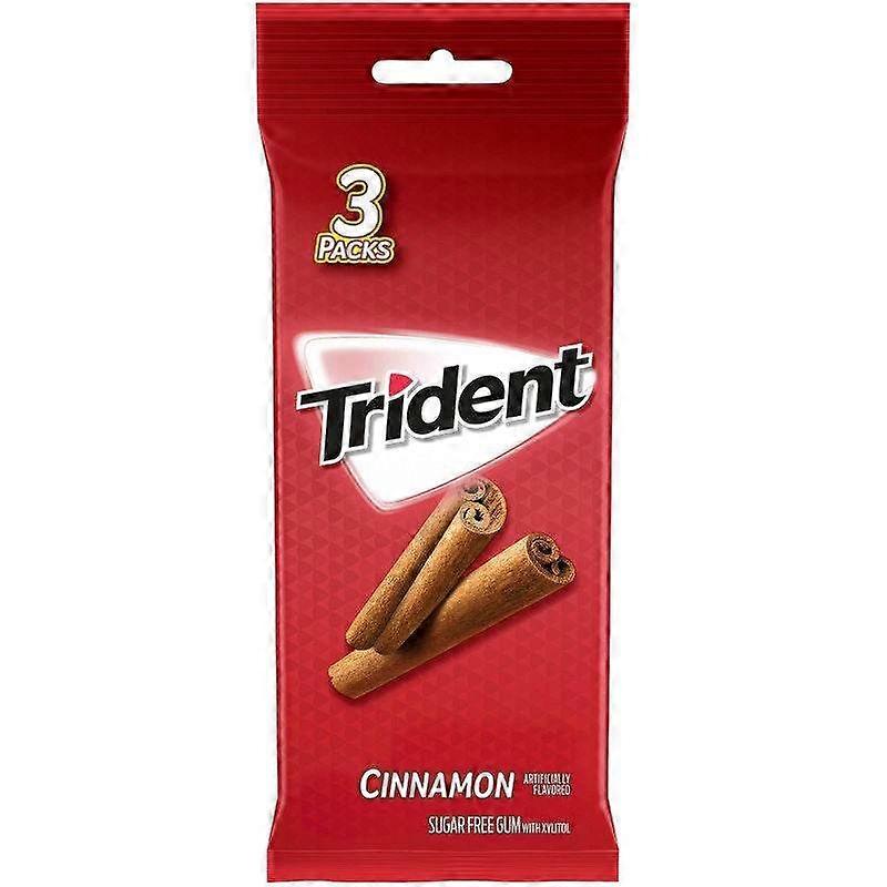 Chew On This Trident is a refreshing pick-me-up for your mouth. Sugarless with 30% fewer calories than sugared gum, it makes for a feel-good chewing experience. This gum is also sweetened with xylitol, a natural sweetener that helps fight plaque and protects against tooth decay with long-lasting flavor. Unapologetically Flavorful Freshen your breath (and care for your mouth) with flavor you can taste and feel. Trident Sugar Free Gum comes in cool long-lasting flavors that give you close-up confidence. Add this gum to care packages, gift baskets, goodie bags, and party favors, or keep a pack on-hand for an instant flavor refresh. Add this package of Trident Cinnamon Flavor Sugar Free Gum to your cart for fresher breath and smiles. Expiration Date: We have fresh stock each week with exceptional expiration dates prior to JANUARY 2024. Products will expire no later than six months to 1 year after receipt. Product Packaging: Please note that some manufacturer may often change their packaging. This product may arrive different from what is pictured. We will always ship the most up-to-date packaging to our customers. Please contact us if you have any questions about this product or would like to request an older version of this product. Healthcare Disclaimer: Content on this site is for reference purposes only. does not represent or warrant that the nutrition, ingredient, allergen and other product information on our Web or Mobile sites are accurate or complete, since this information comes from the product manufacturers. On occasion, manufacturers may improve or change their product formulas and update their labels. We recommend that you do not rely solely on the information presented on our Web or Mobile sites and that you review the product's label or contact the manufacturer directly if you have specific product concerns or questions. If you have specific healthcare concerns or questions about the products displayed, please contact your licensed healthcare professional for advice or answers. UPC: 012546011525 Weight: 7.99 oz OSE: JK75489-01-359-2022616-TAR12945672
