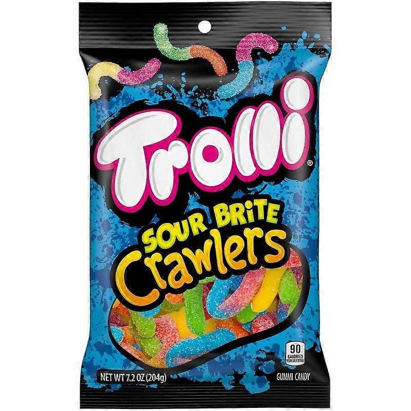 Trolli Sour Brite Crawlers 7.2oz Bag are multi-flavored gummy worms covered in a tongue-twisting sugary goodness, striking the perfect balance of sweet and sour in every bite. Trolli sour gummy worms in neon colors & sugar coating pack a punch of tangy sweetness in weirdly-awesome fruity flavor combinations like Cherry-Lemon, Strawberry-Grape and Orange-Lime. Don't forget to show your friends your Weirdly Awesome side with Trolli