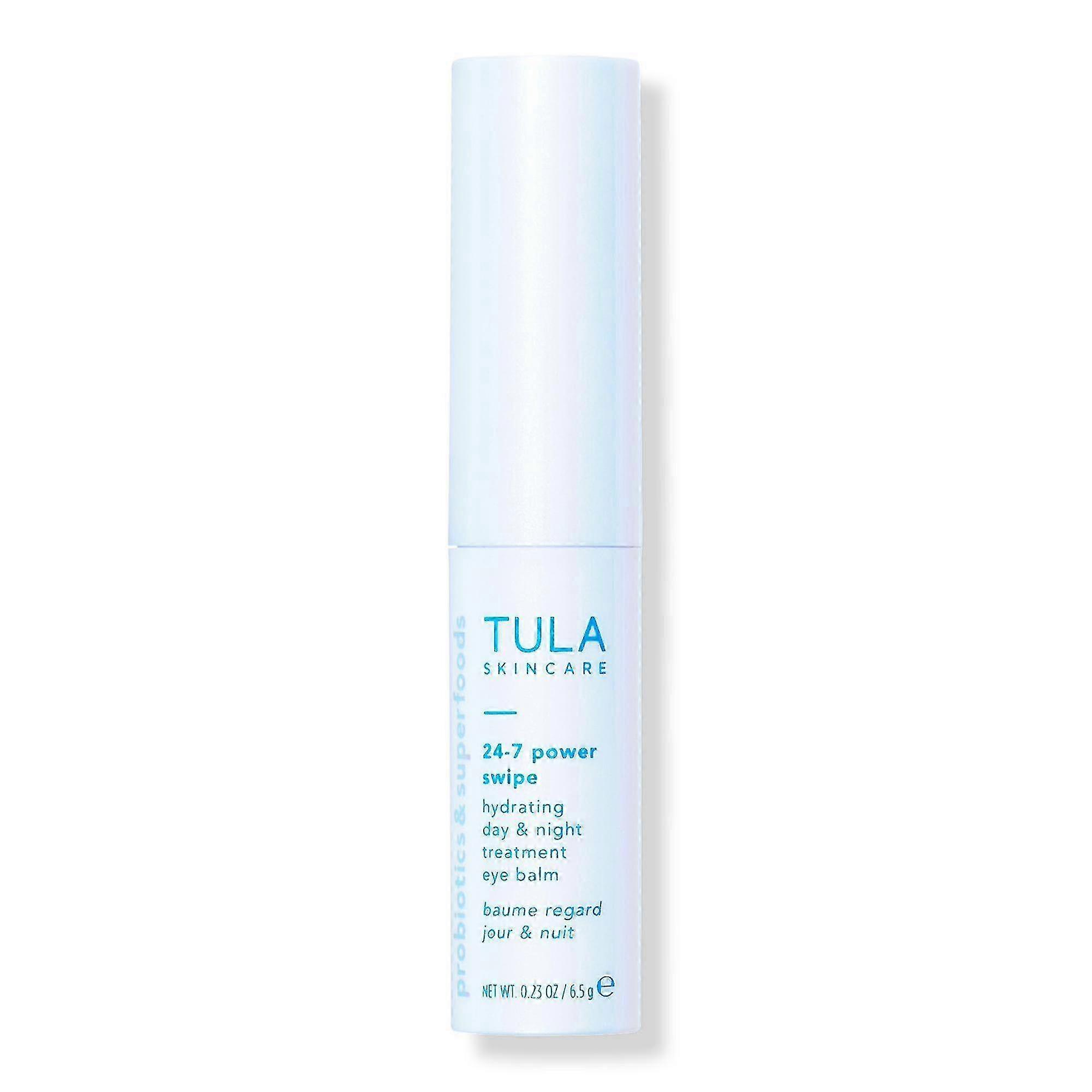 Packed with the same benefits as TULA's 24-7 Moisture Hydrating Day & Night Cream, 24-7 Power Swipe Hydrating Day & Night Treatment Eye Balm helps to deeply hydrate, firm & reduce the look of fine lines, wrinkles & puffiness. Bonus: Protects from the damaging effects of blue light & pollution. Benefits Deeply hydratesFirms & reduces the look of fine lines, wrinkles & puffinessProtects from the damaging effects of blue light & pollutionCan be used day or night, works well under makeupDoes not contain live cultures Key Ingredients TULA Complex: proprietary Super6 blend of prebiotics & probiotic extracts to help improve skin smoothness & maintain skin balanceEye Peptides & Collagen: help reduce the look of fine lines & wrinklesHyaluronic Acid & Squalane: deeply hydrate & nourishCaffeine, Apple & Watermelon: firm & improve the look of eye puffinessCocoa Seed Extract & Blueberry: protect from the damaging effects of blue light & provide antioxidant protection Active Ingredients: Apply directly to the eye area under makeup, or at night to wake up to replenished looking eyes. Suggested Use: Packed with the same benefits as TULA's 24-7 Moisture Hydrating Day & Night Cream, 24-7 Power Swipe Hydrating Day & Night Treatment Eye B. . . Expiration Date: We have fresh stock each week with exceptional expiration dates prior to APRIL 2024. Products will expire no later than six months to 1 year after receipt. Product Packaging: Please note that some manufacturer may often change their packaging. This product may arrive different from what is pictured. We will always ship the most up-to-date packaging to our customers. Please contact us if you have any questions about this product or would like to request an older version of this product. Healthcare Disclaimer: Content on this site is for reference purposes only. OTC Shoppe Express does not represent or warrant that the nutrition, ingredient, allergen and other product information on our Web or Mobile sites are accurate or complete, since this information comes from the product manufacturers. On occasion, manufacturers may improve or change their product formulas and update their labels. We recommend that you do not rely solely on the information presented on our Web or Mobile sites and that you review the product's label or contact the manufacturer directly if you have specific product concerns or questions. If you have specific healthcare concerns or questions about the products displayed, please contact your licensed healthcare professional for advice or answers. UPC: 000002584397 Weight: 0.57 lbs