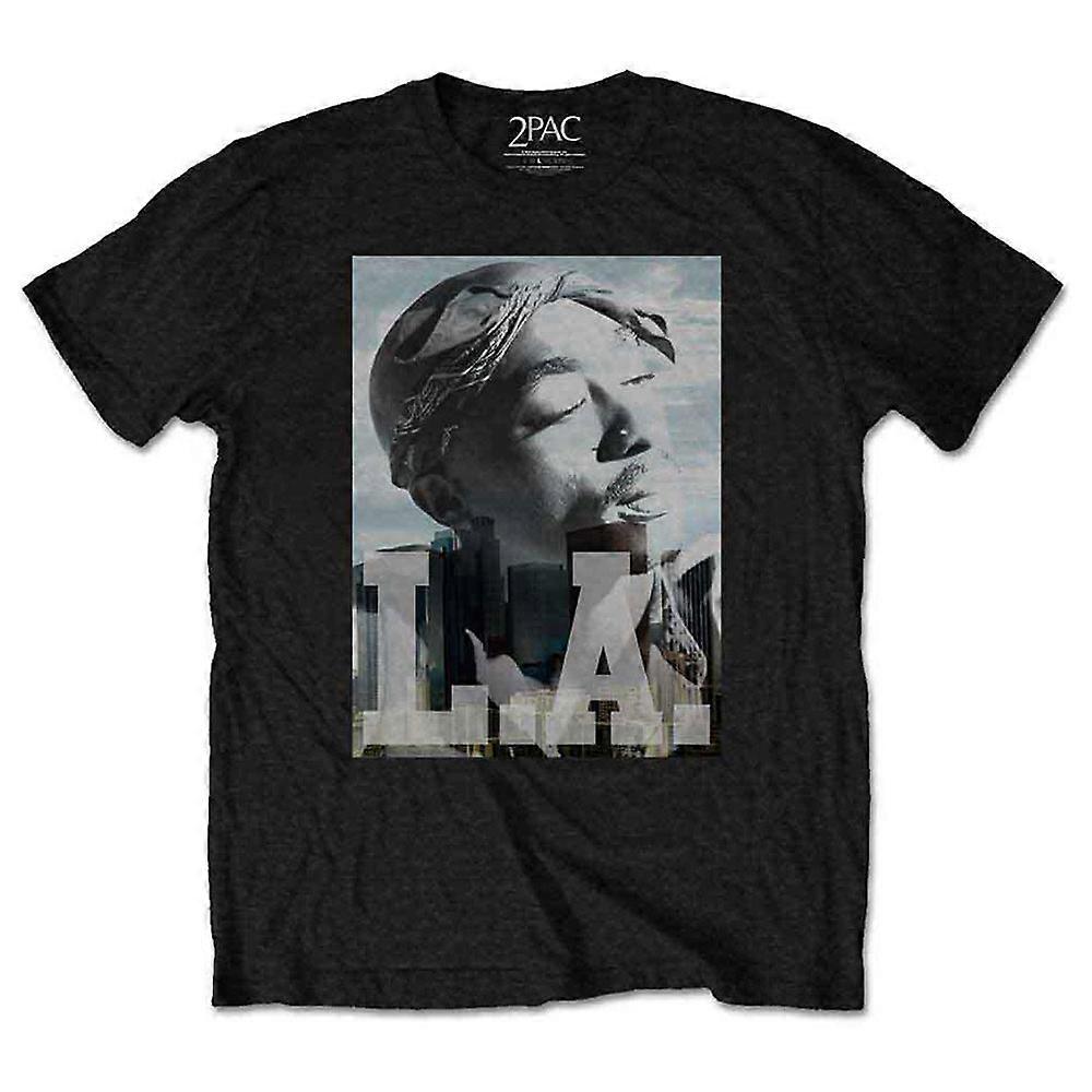 An official licensed Tupac Unisex Tee featuring the 'LA Skyline' design motif. This high quality t-shirt design is available in the black colourway. Classic men's fit tee featuring soft-style cotton. Comes in a wide range of sizes from Small through XX-Large, subject to availability.