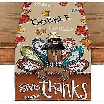 Turkey Give Thanks Thanksgiving Table Runner, Seasonal Fall Autumn Kitchen Dining Table Decoration for Home Party Decor