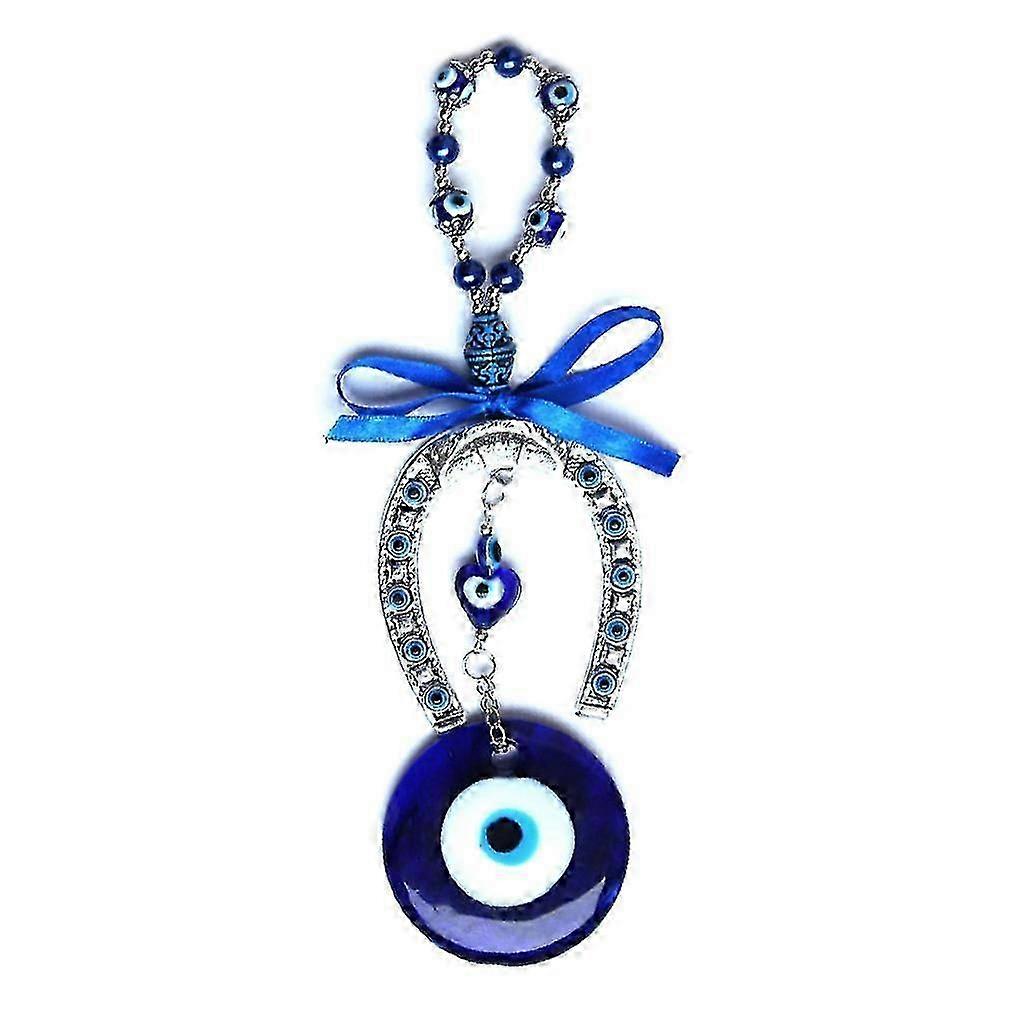 Turkish Blue Evil Eye Horseshoe Decoration Wall Hanging Pendant Amulets Protection Key Ring Home Ornament