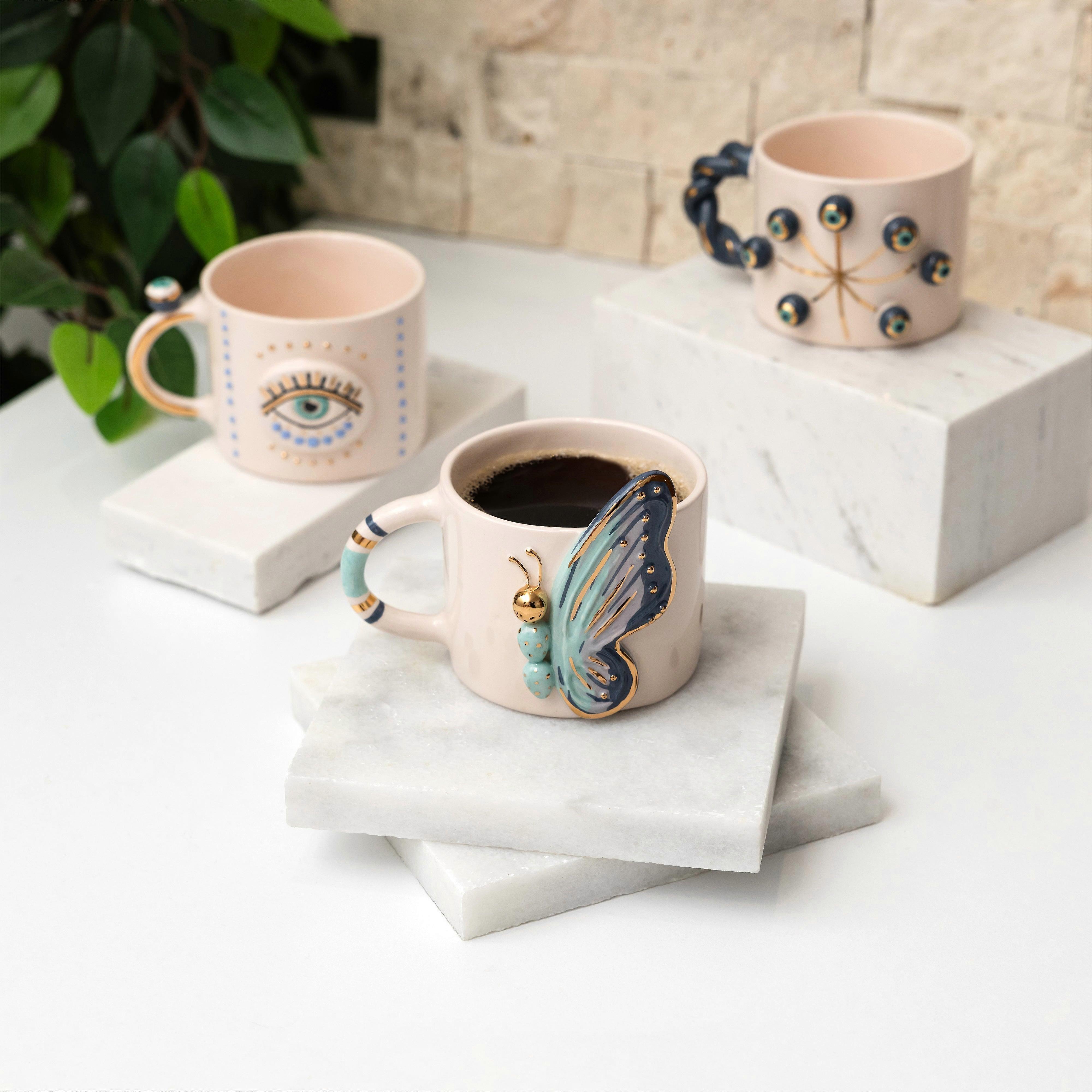 Turquoise Butterfly Dreams Mug – Hand-painted Butterfly Nature-inspired Ceramic Mug With Real Gold Accents