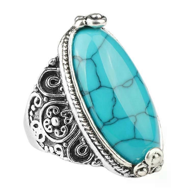 Turquoise Flower Ring-Vintage Oval Design,Antique Silver Jewelry for Women Blue,8