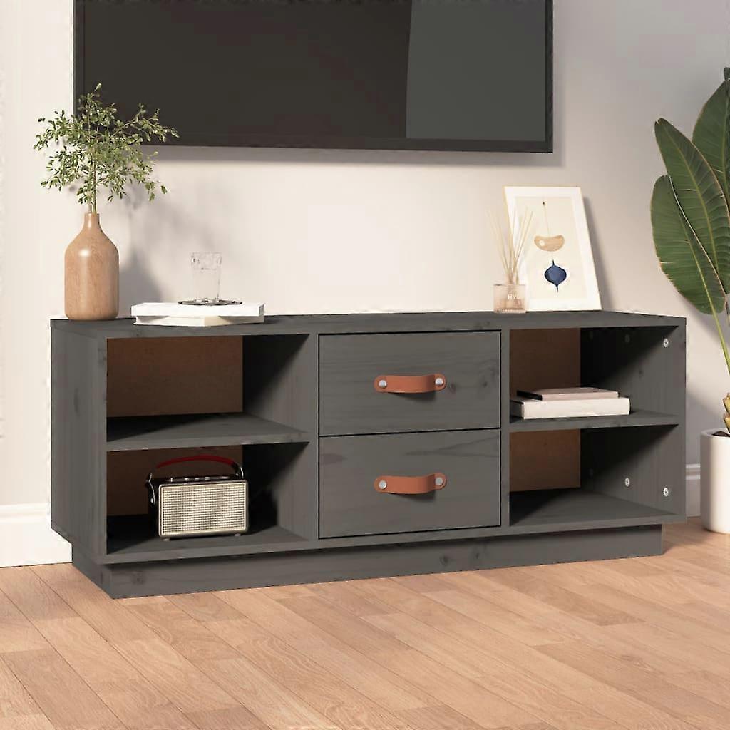 TV-Schrank Grau 100x34x40 cm Massivholz Kiefer