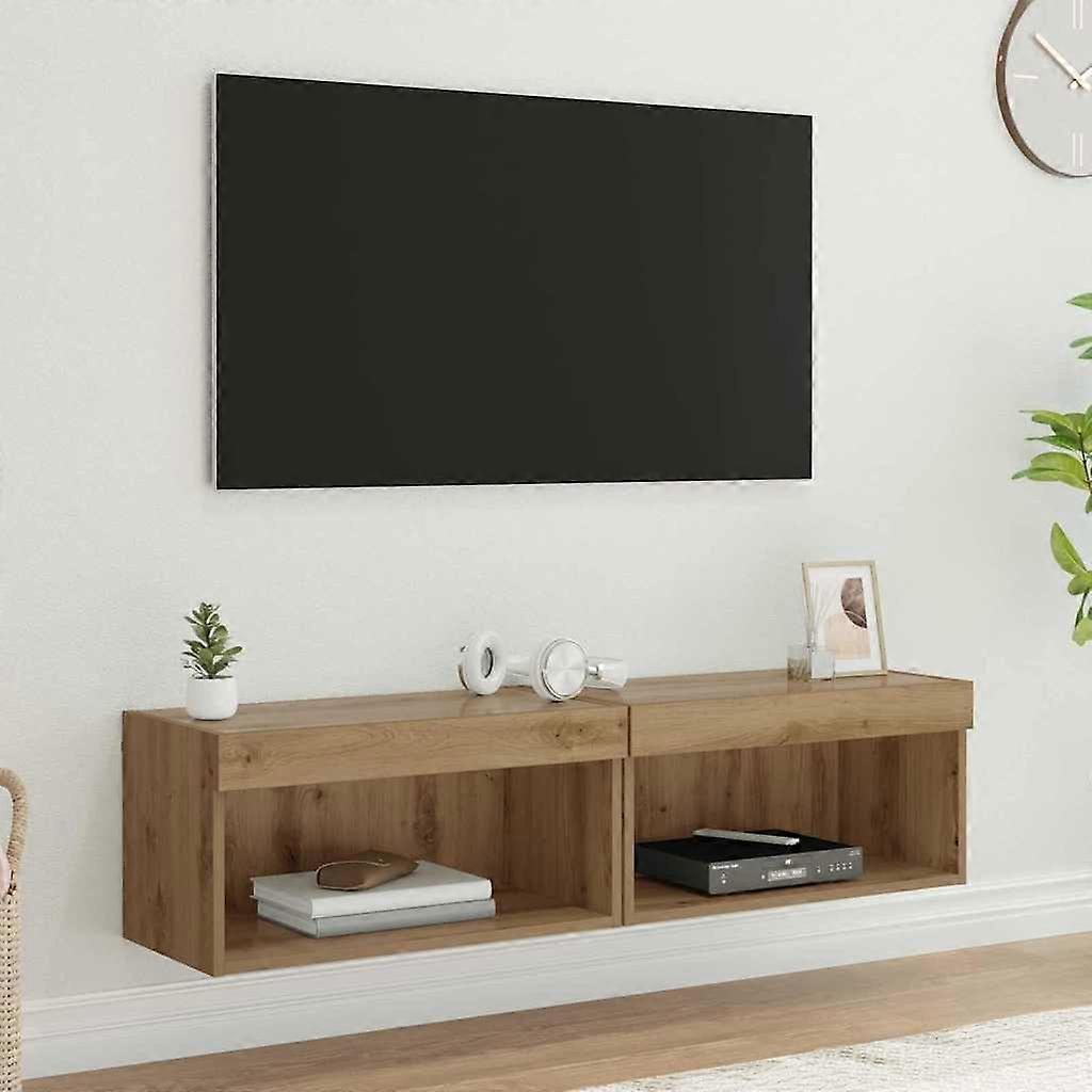 TV-Schrankset mit LED Wandmontiert Artisan-Eiche Holzwerkstoff