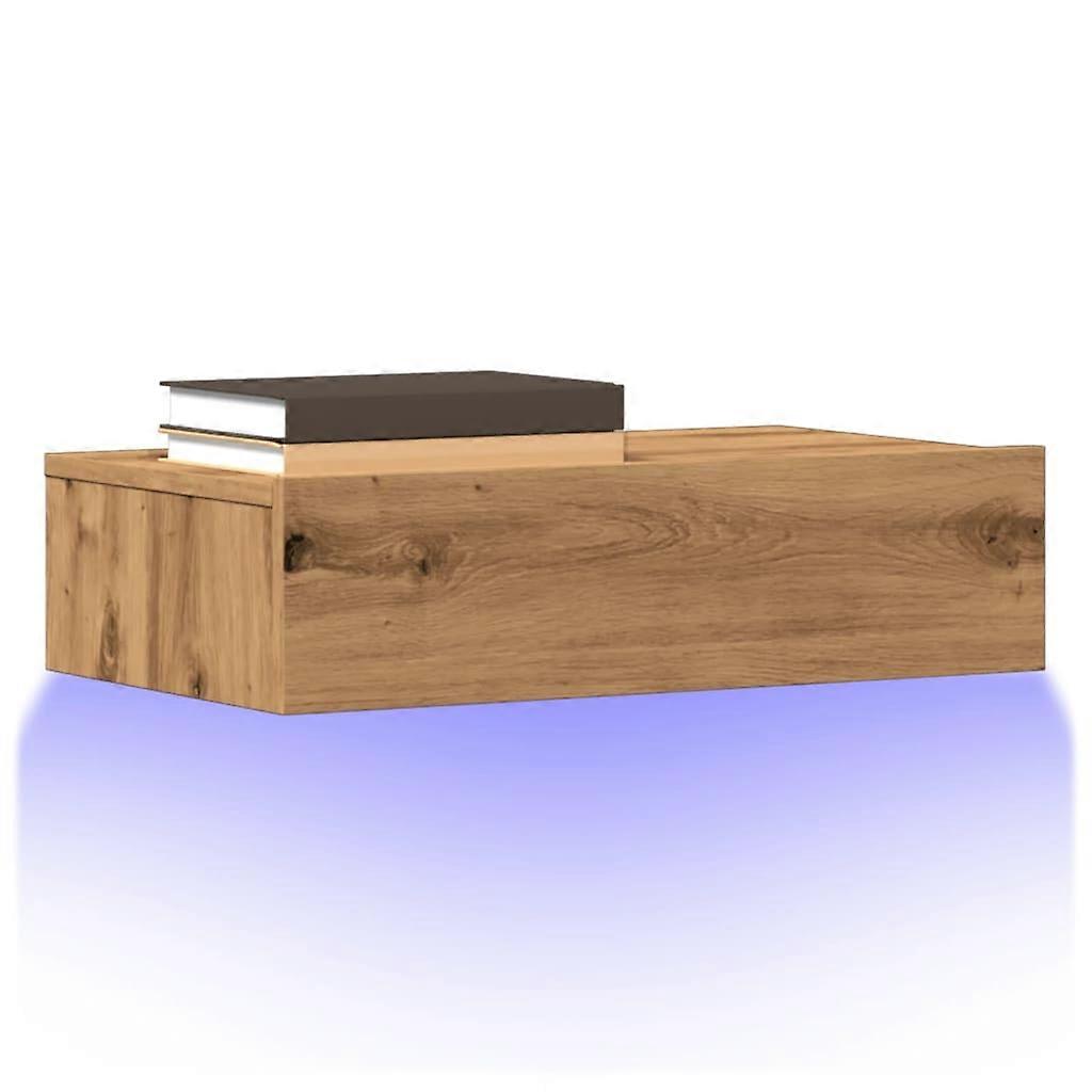 Mit seinem stilvollen und zugleich praktischen Design wird dieser TV-Schrank mit LED-Leuchten definitiv ein Blickfang in deinem Zimmer sein. Starkes und langlebiges Material: Holzwerkstoff ist ein langlebiges und robustes Material mit einer glatten Oberfläche, das gegen Feuchtigkeit, Verformung und Rissbildung beständig ist, wodurch es eine zuverlässigen Wahl für die Herstellung von Möbeln ist.Reichlich Stauraum: Dieses TV-Lowboard bietet reichlich Stauraum, um deine Zeitschriften, Bücher, DVDs, CDs und Elektronikgeräte ordentlich und griffbereit aufzubewahren.RGB-LED-Beleuchtung für ein angenehmes Ambiente: Dieser TV-Schrank verfügt über LED-Leuchten, die einfach eingestellt werden können, um eine personalisierte Lichtshow zu erzeugen. Du kannst die Modi, Farben und Helligkeit anpassen, um das Ambiente in deinem Wohnraum zu verbessern.Platzsparend: Dieser TV-Schrank kann an der Wand montiert werden, um zusätzlichen Stauraum zu schaffen. Auf diese Weise kannst du deine Bodenfläche maximieren und dein Zuhause aufgeräumt halten.Pflegeleicht: Das TV-Lowboard lässt sich leicht mit einem feuchten Tuch reinigen und braucht wenig Pflege. Gut zu wissen:Das Produkt verfügt über einen USB-Anschluss, für den eine zertifizierte 5V-USB-Stromquelle erforderlich ist (nicht im Lieferumfang enthalten).Schrauben und Dübel für die Montage an der Wand sind nicht enthalten. Passendes Montagezubehör muss separat gekauft werden. Wenn du dir bezüglich der Montage nicht sicher bist, wende dich bitte an einen Fachmann. Bitte lies und befolge jeden Schritt in der Anleitung. Farbe: Artisan-EicheMaterial: HolzwerkstoffAbmessungen: 60 x 35 x 15,5 cm (B x T x H)Max. Belastbarkeit (insgesamt): 60 kgZusammenbau erforderlich: Ja