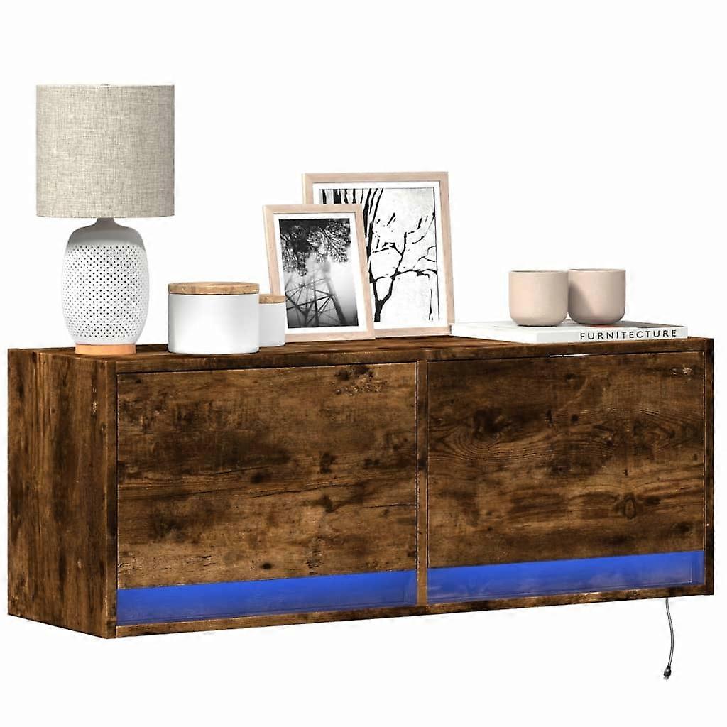 TV-Wandschrank mit LED-Beleuchtung Räuchereiche 100x31x35 cm