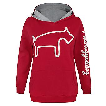 Two Legged Dog Womens Hoodie Red Puff Print