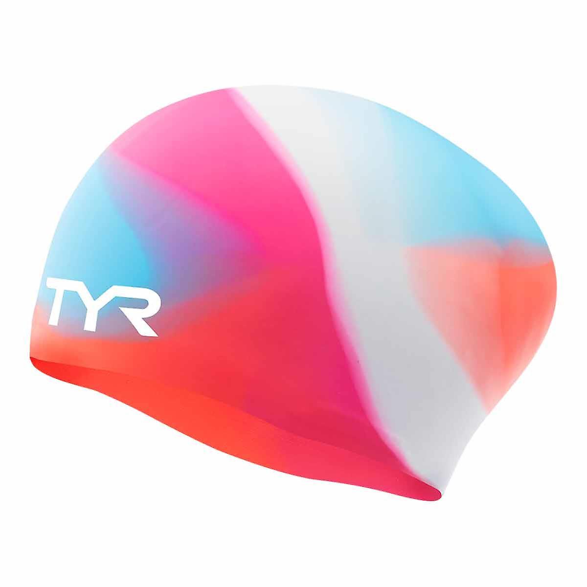TYR Tie Dye Youth Long Haired Silicone Swim Cap - Pink/Blue/Orange Unisex Kids