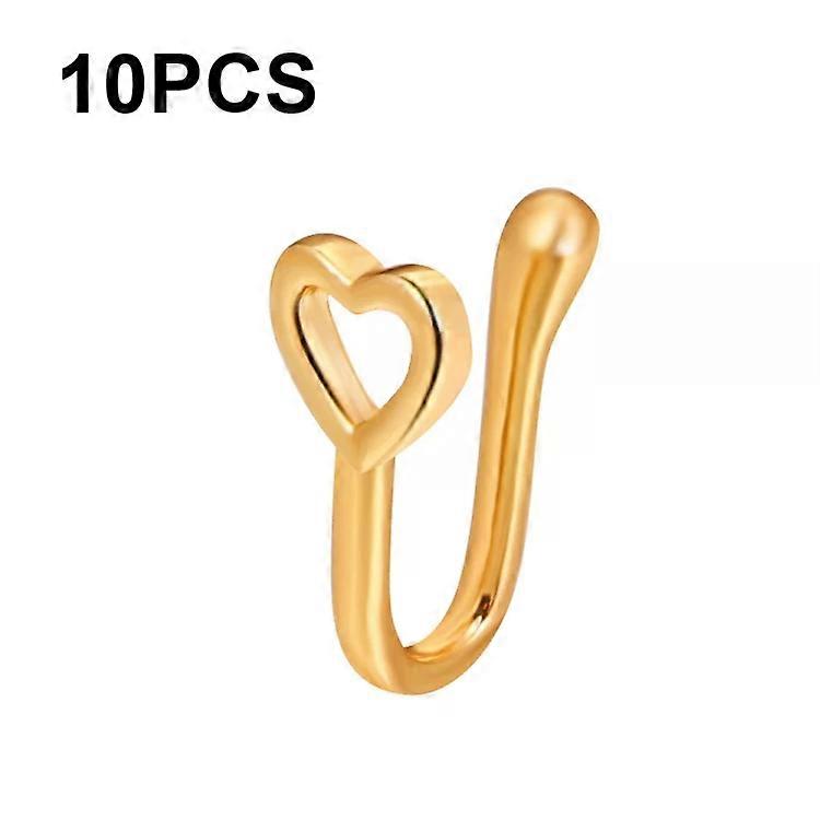 U-shaped Nose Clip-10 PCS Copper with Zircon Decoration,Gold -