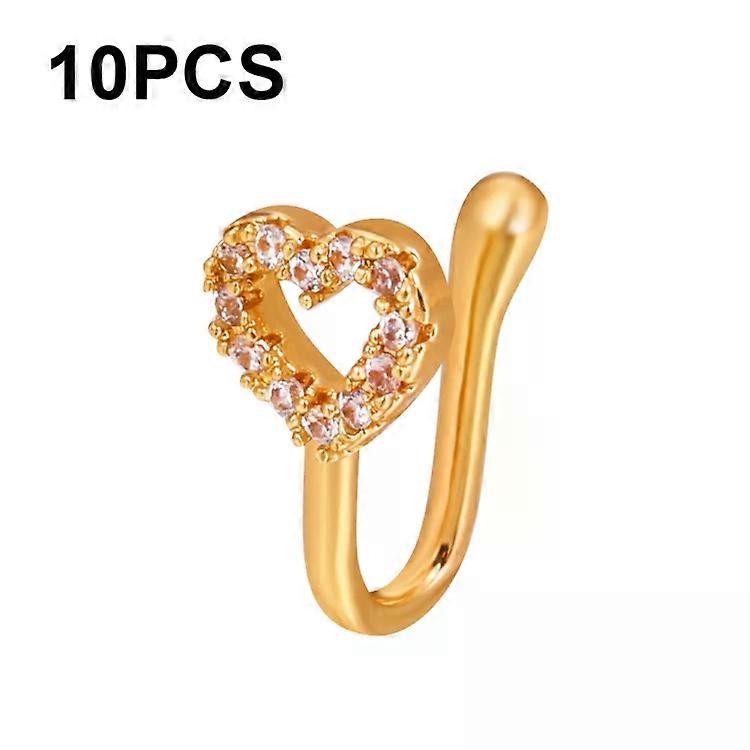 U-shaped Nose Clip-10 PCS Copper with Zircon Inlay,Gold G-235