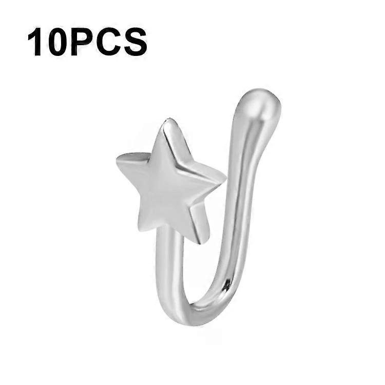 U-shaped Nose Clip-Copper Inlaid with Zircon,10 PCS,Silver -