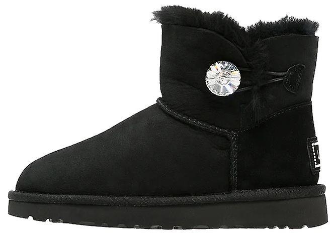 Ugg Mini Bailey Button Bling Black Womens Suede Sheepskin Boots