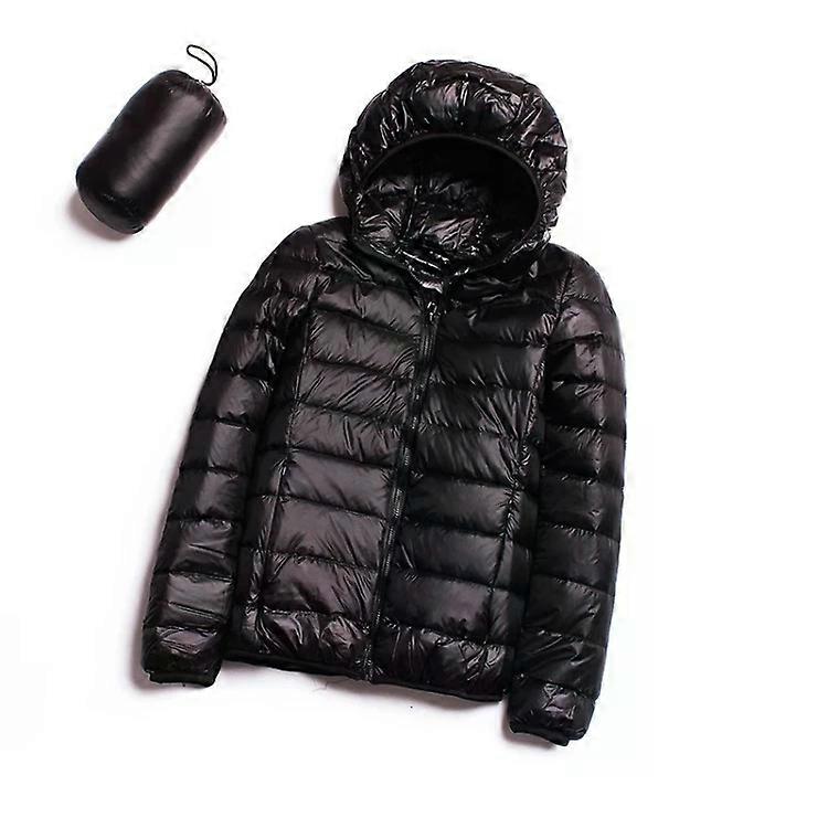 Ultra Light White Duck Down Jacket for Women-Hooded Warm Coat,Size L Black,L
