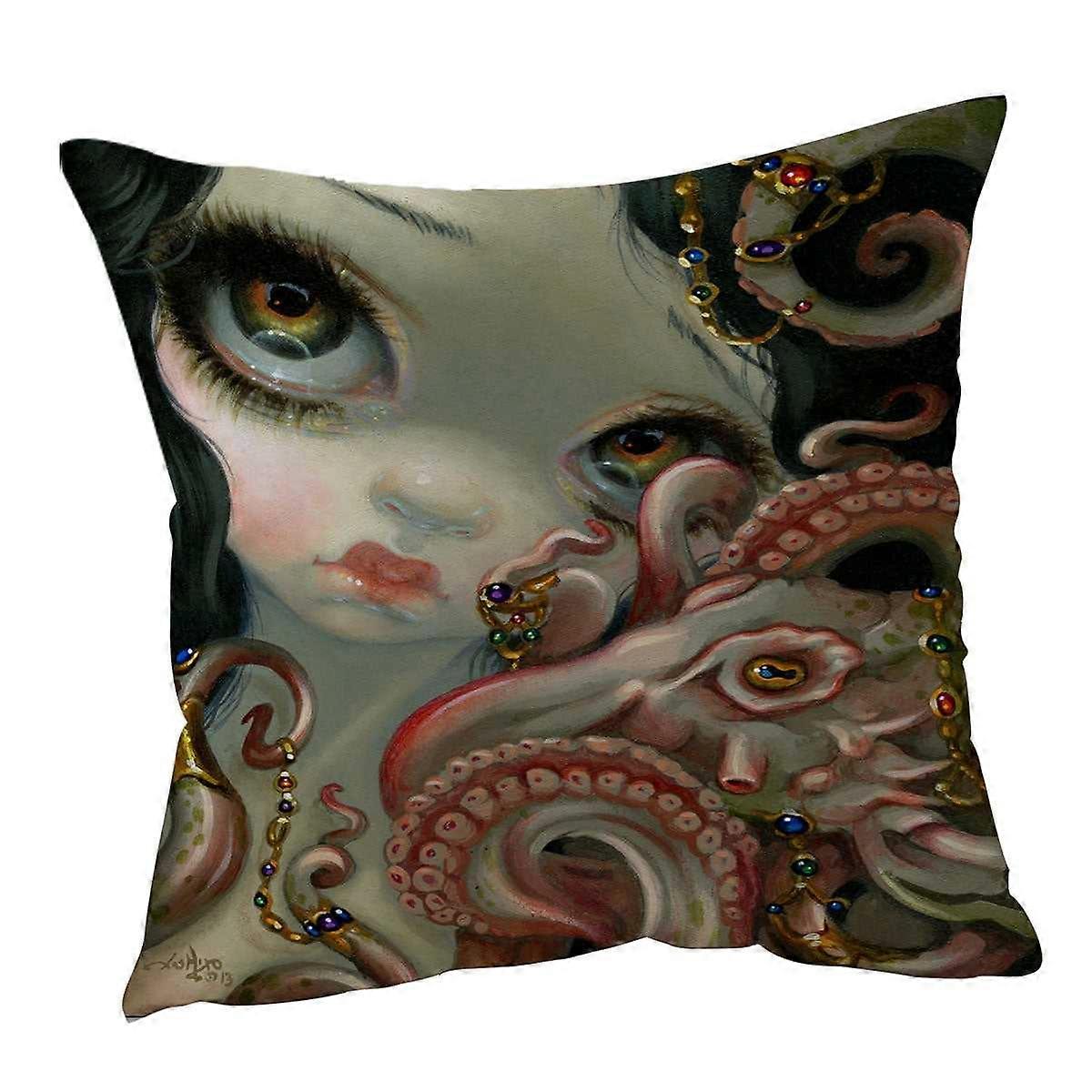 Underwater Fantasy Jeweled Octopus and Mermaid Cushion Cover