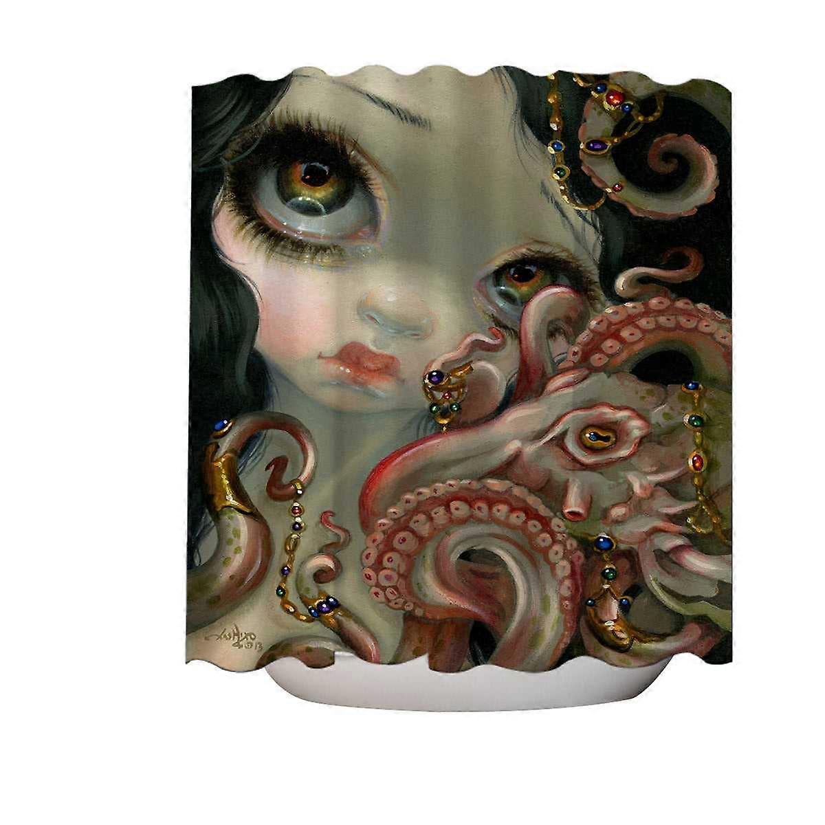 Underwater Fantasy Jeweled Octopus and Mermaid Shower Curtain
