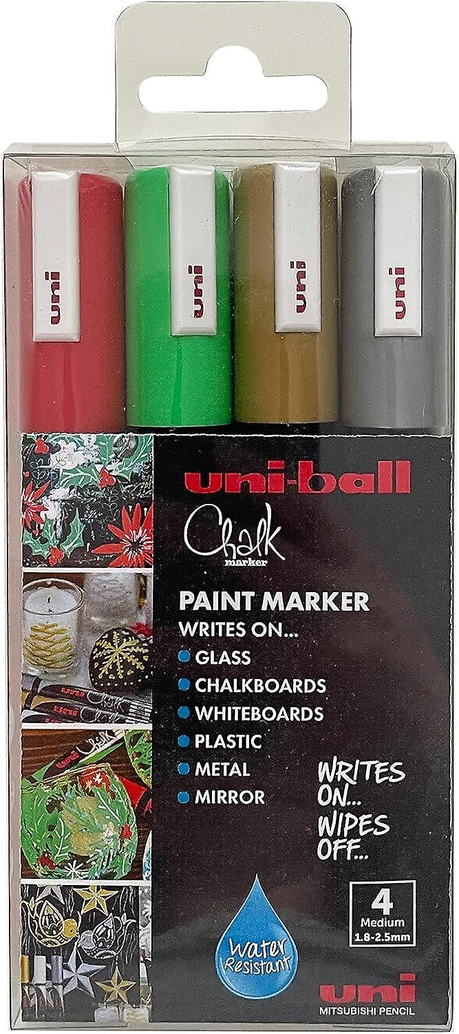 Uni-Ball PWE-5M Chalk Marker Christmas Colour Set 4pc