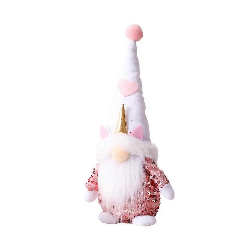 Unicorn Gnome Pink Sequin Long Hood Elf Dwarf Figurine Desk Decoration