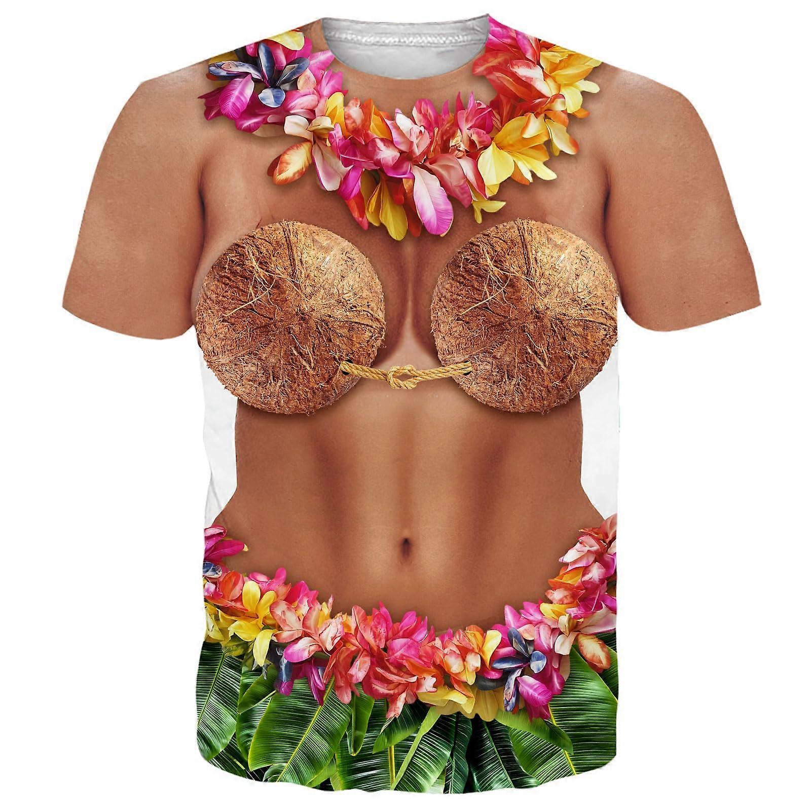 Unisex 3D fake muscle T-shirt with ragtag chest print short sleeved clothing, innovative T-shirt