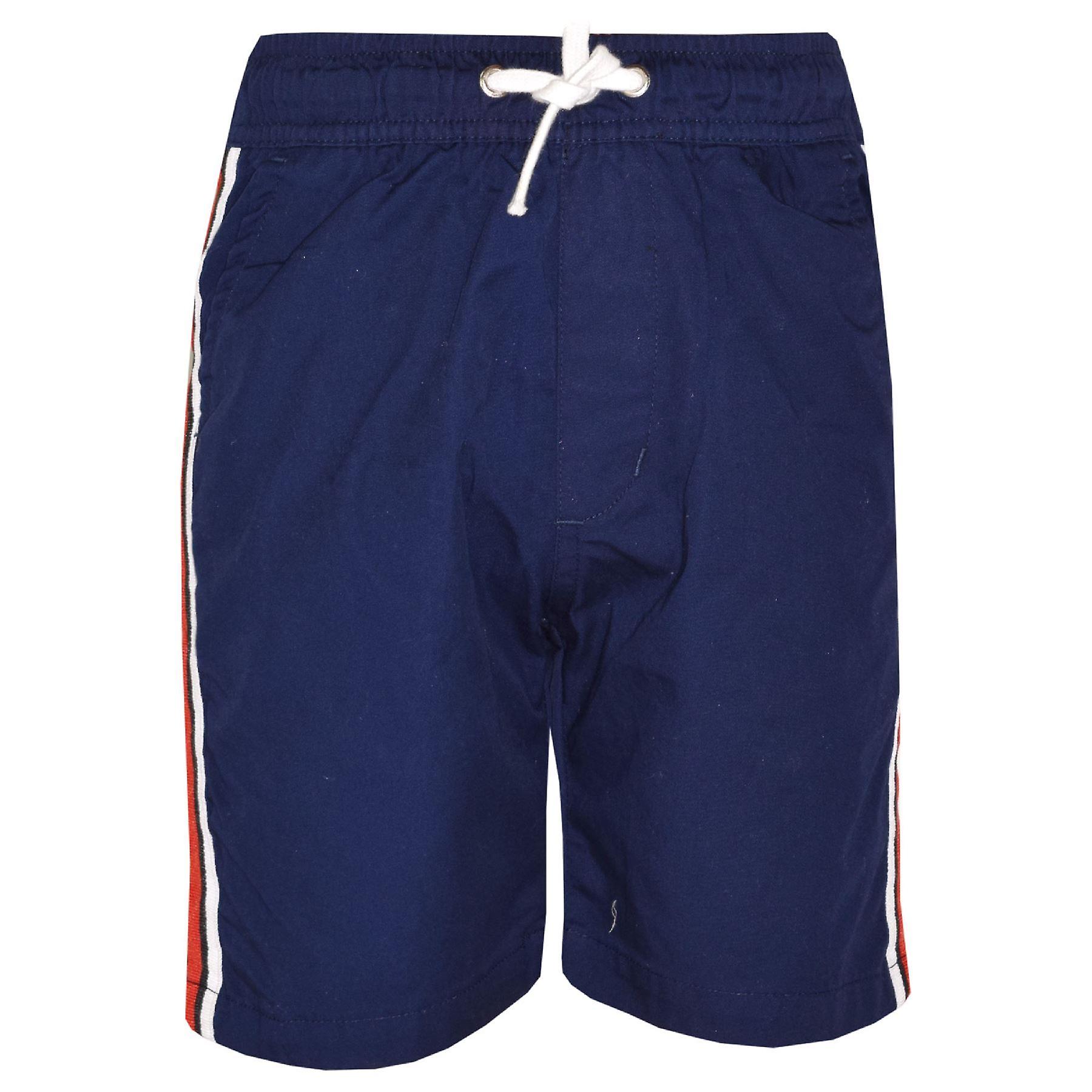 Unisex Contrast Taped Navy Blue Chino Shorts.Two Pockets on the Front and One Back Pocket.Elasticated Waist and Adjustable Draw Code.Material:65% Polyester, 35% CottonActual Colors May Vary From Pictures Due To Different Display Settings And Lighting Effects In Studio.