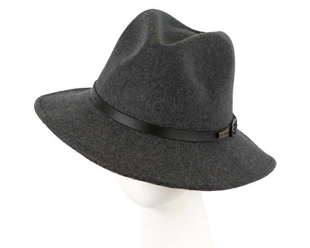 Unisex Dark Grey Fedora Felt Wide Brim Foldable Hat J1849GR