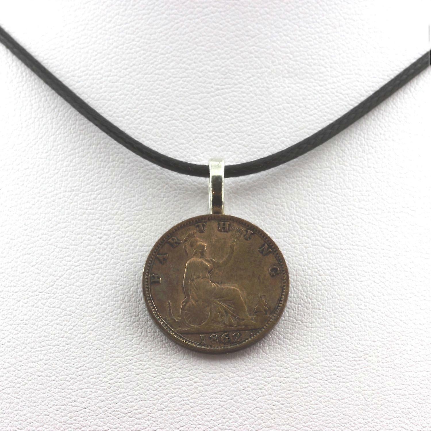 United Kingdom 1 farthing Victoria 'bun head' coin necklace, copper