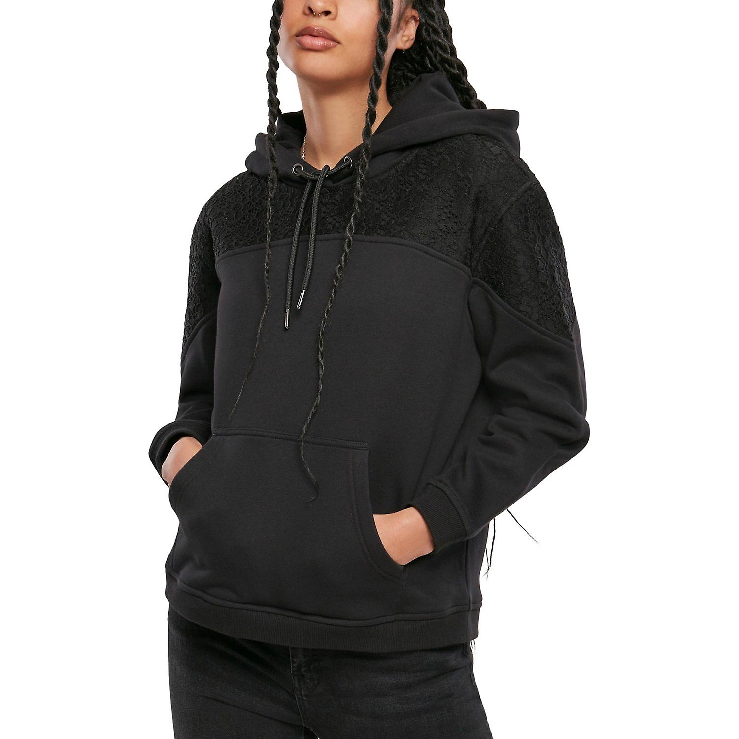 Urban Classics Ladies - Lace Inset Hoody schwarz