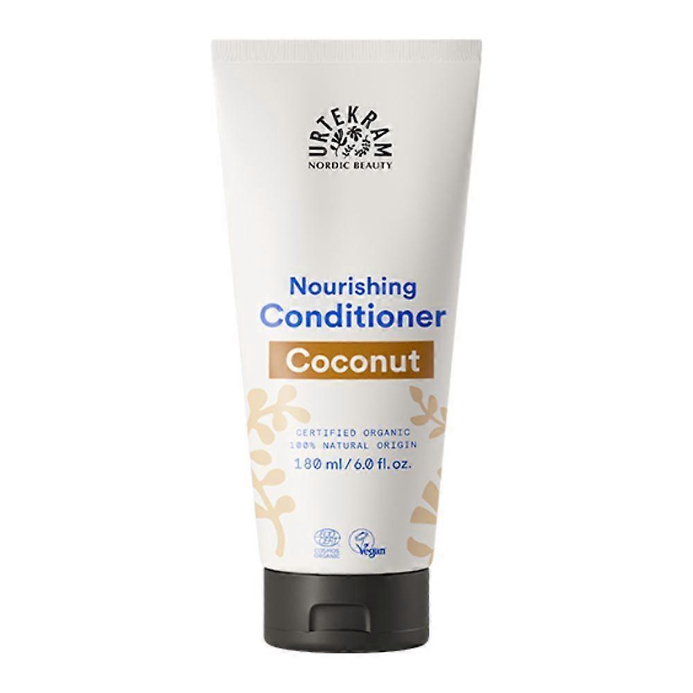 Urtekram Organic Coconut Conditioner 180ml is a nourishing hair care solution formulated with organic virgin coconut oil and coconut nectar. Designed specifically for normal hair, this conditioner provides deep hydration and moisture, leaving your hair soft, smooth, and revitalized.Certified to the Cosmos standard, this conditioner is crafted with natural and organic ingredients, ensuring a gentle yet effective treatment for your hair. The vegan formula is free from animal testing, aligning with ethical and sustainable beauty practices.The rich blend of organic coconut oil and coconut nectar works to restore moisture balance, reduce dryness, and enhance hair's natural shine. With regular use, your hair will feel nourished and silky, accompanied by the delightful, subtle fragrance of natural coconut sweetness.Key Benefits: Deeply nourishes and moisturizes normal hair Enhances hair softness and manageability Leaves hair with a natural, refreshing coconut scent Certified organic and vegan-friendly formula Produced in accordance with Cosmos standards Not tested on animalsUsage Instructions: After shampooing, apply an adequate amount of conditioner to wet hair. Gently massage into the hair and scalp, then leave in for 2-3 minutes to allow the nourishing ingredients to penetrate. Rinse thoroughly. For best results, use regularly as part of your hair care routine.