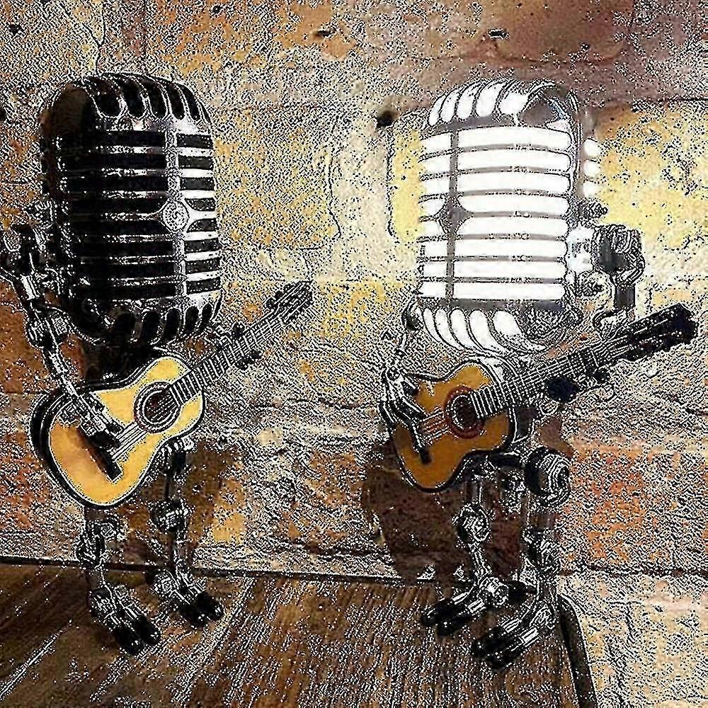 Usb Retro Style Microphone Robot Lamp Holding Guitar With Light Vintage Home Decoration