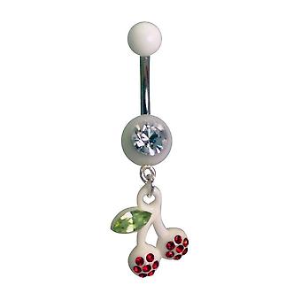 Uv surgical steel belly ring with white dangle cherry design - 14 gauge 7/16