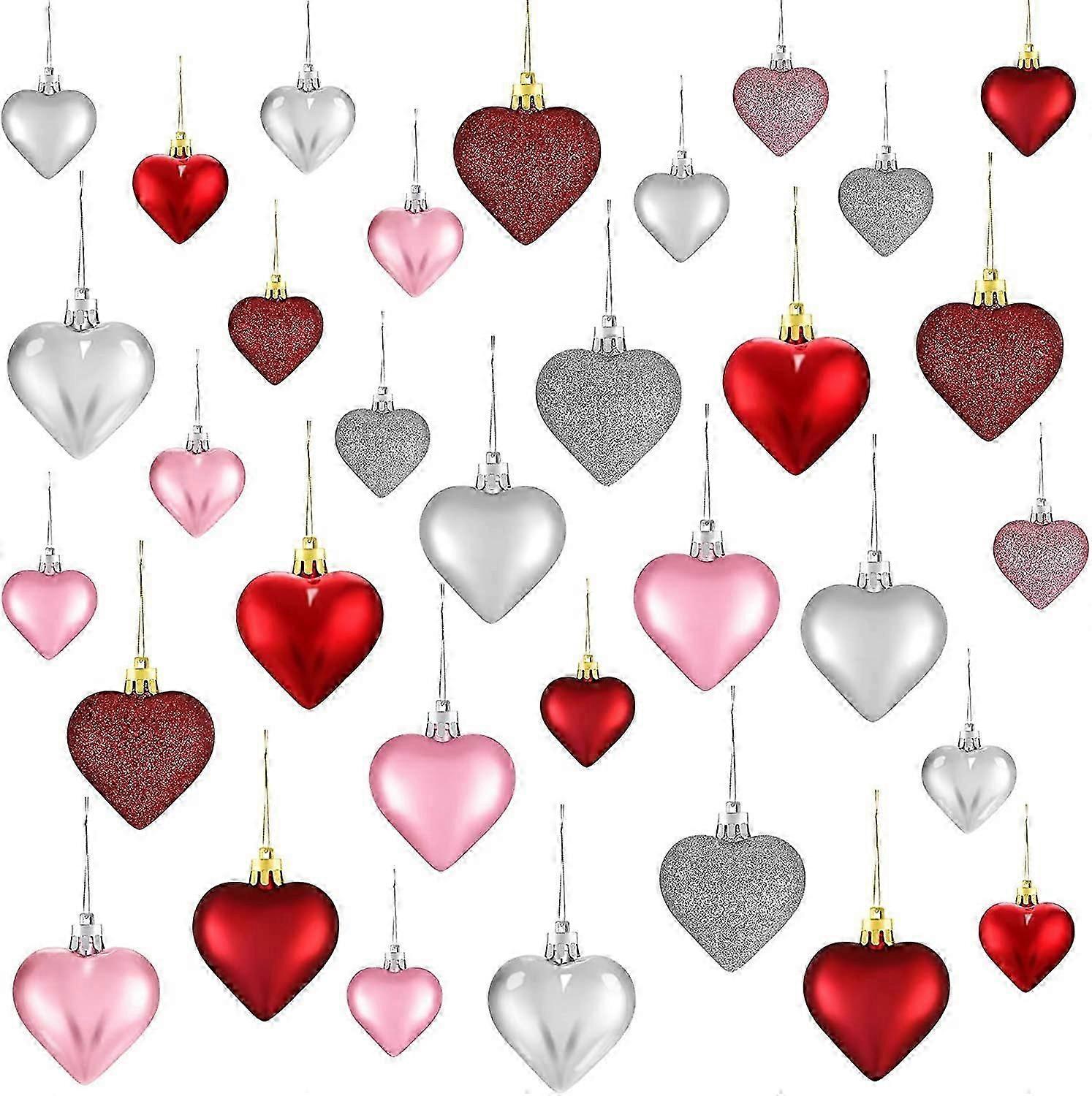 Valentine's Day Heart Ornaments, 3 Heart Baubles Heart Shaped Christmas Tree Baubles Heart Hanging Decorations for Valentine's Day Wedding Anniversary