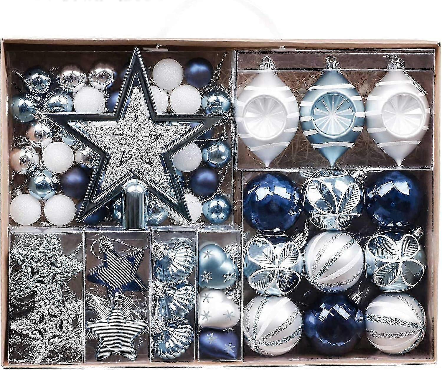 Valery Madelyn 70pcs 3-10cm Shatterproof Christmas Baubles Winter Wishes Silver And Blue Christmas Ball Ornaments For Christmas Tree Decorations