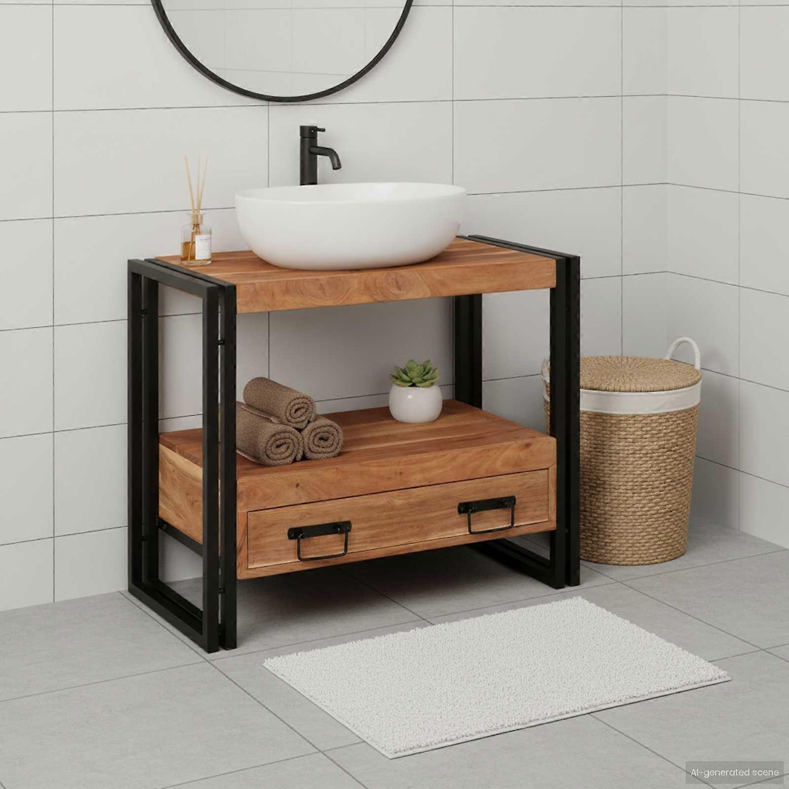 Farbe: BraunMaterial: Massivholz AkazieGesamtabmessungen: 71 x 33 x 58 cm (L x B x H)Gewicht: 14,43 kgLanglebigmit 1 SchubladeRahmenmaterial: EisenMax. Gewicht: 60 kgNur für den InnenbereichLieferumfang:1 x WaschtischschrankMontage erforderlich: Ja