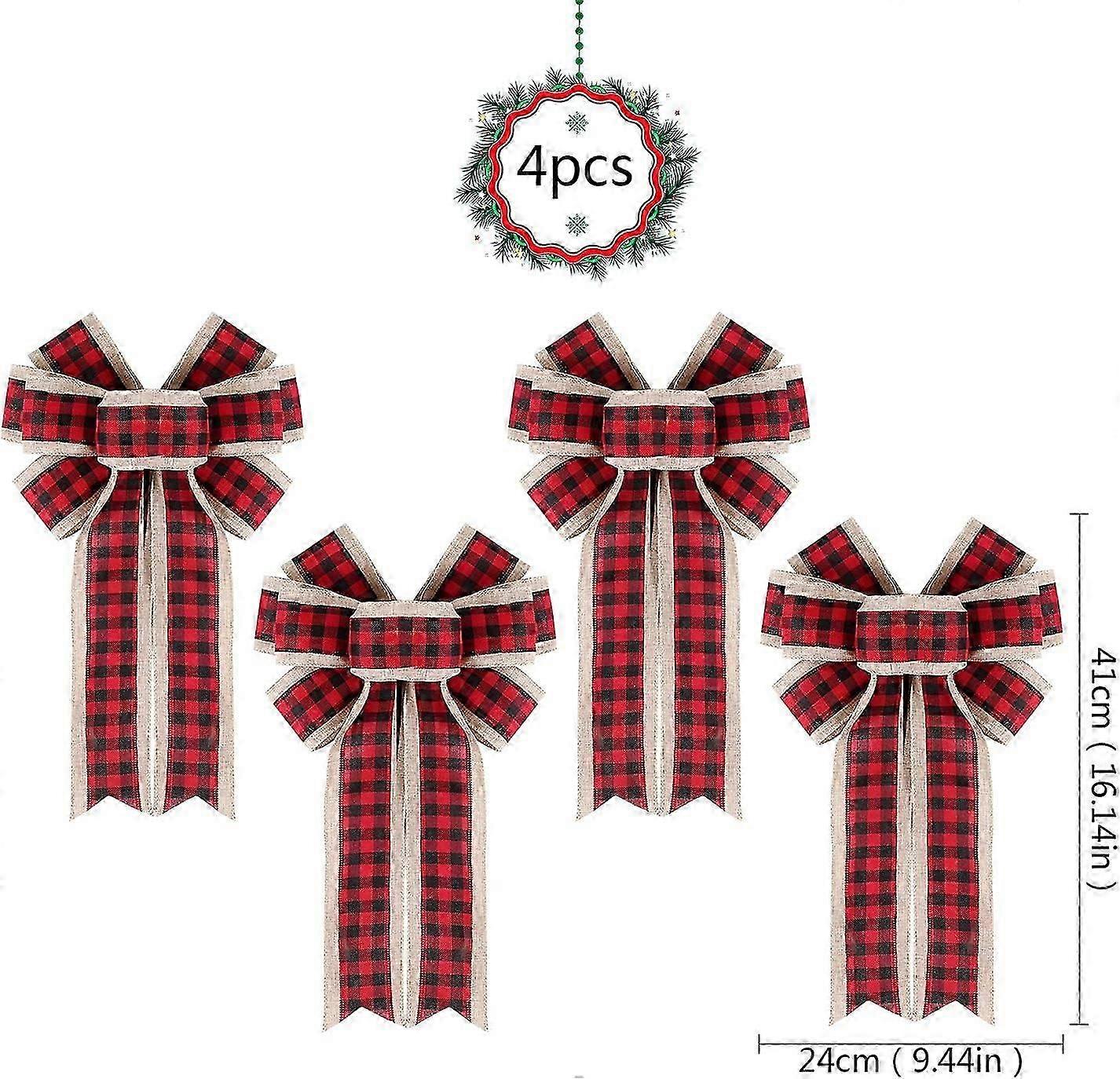 Christmas Checkered Knots, 4 Pieces Of Buffalo Checkered Bows Christmas Wreath Knots Christmas Bows Burlap Ribbon Bows Black