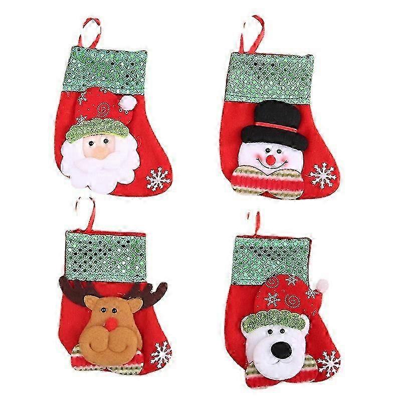 Christmas Stockings, 4 Pieces Mini Christmas Stockings, Christmas Socks Decoration, Small Christmas Socks to Hang, Fireplace Stocking, Christmas Boot