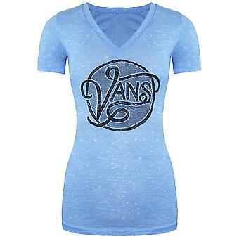 Vans Off The Wall Graphic Logo V-Neck Short Sleeve Blue Womens T-Shirt VVZI9NM