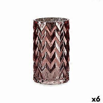 Vase Gift Decor Pink Crystal Ear (of wheat) Engraving 11,3 x 19,5 x 11,3 cm (6 Units)