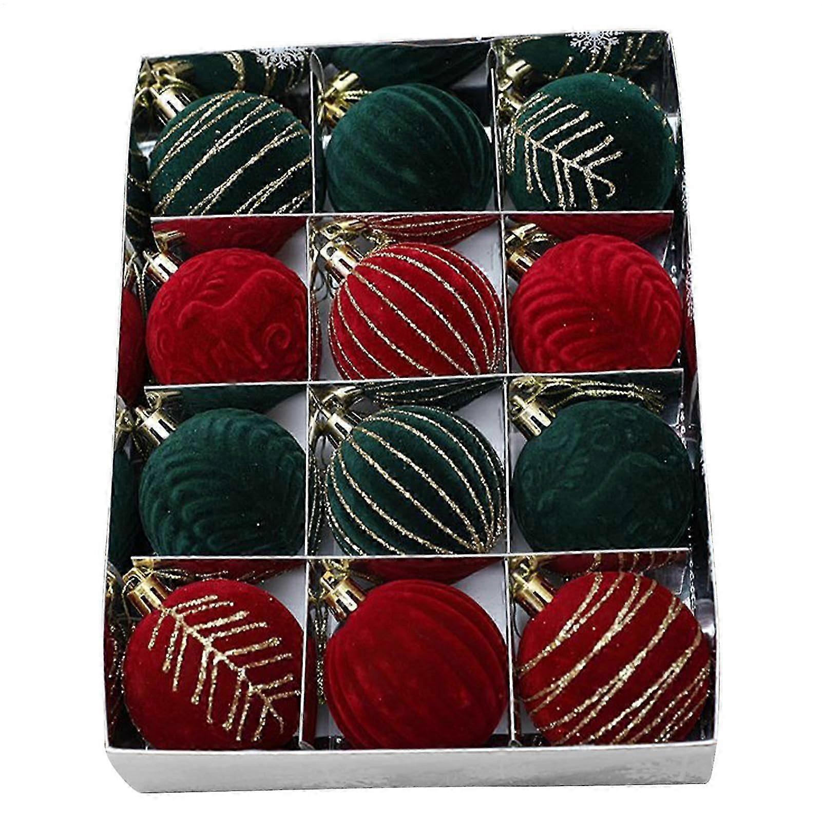 Velvet Christmas Baubles Set of 12 Shatterproof Tree Ornaments, 2.7' Velvet Balls in Red and Green