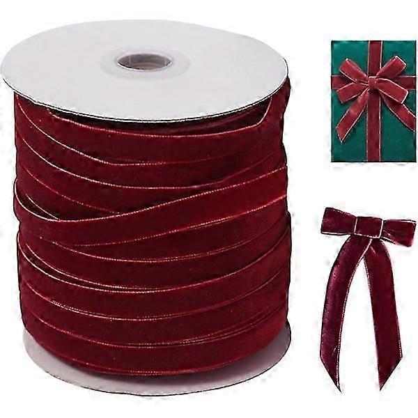 Velvet Ribbon 50 Yards Long Velvet Ribbon 3/8 Inch Wide Single Sided Velvet Ribbon Christmas Ribbon with Roll Wine Red