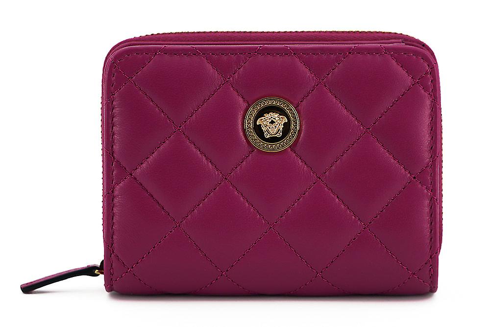 Versace Purple Nappa Leather Bifold Zip Around Wallet