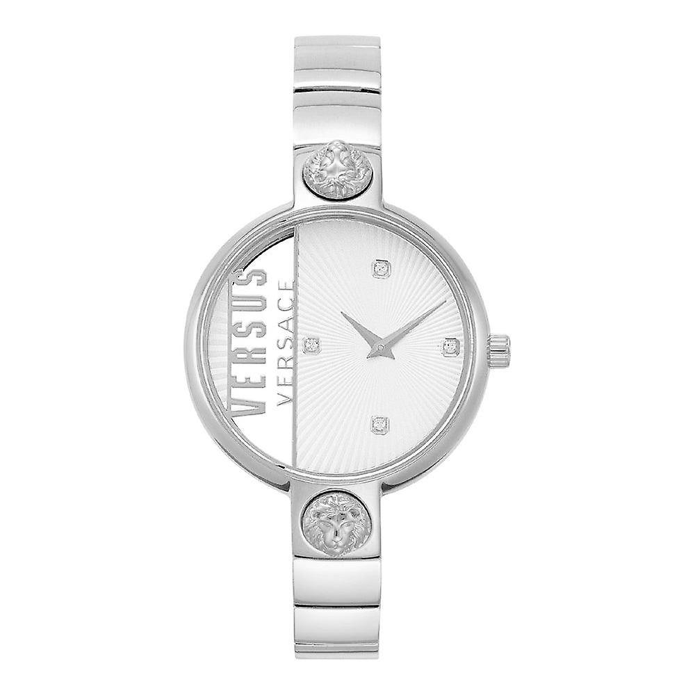 Versus VSP1U0119 Ruedenoyez Ladies Watch has a modern and unique design. A bold and sleek addition for the fashionista in your life, this Versus by Versace watch is a must The stainless steel wristband is accented with a glam silver stainless steel band, and the dial is accented with crystal glitter accents. FeaturesVersus VSP1U0119 Ruedenoyez Ladies WatchStainless steel case, silver coloured coating, polishedStainless steel strap, silver coloured coating, polished, clip claspQuartz movement, battery operated50 meters Water ResistantDial colour silver / transparentCase width ca. 34 mmCase height ca. 7 mmComes with box.
