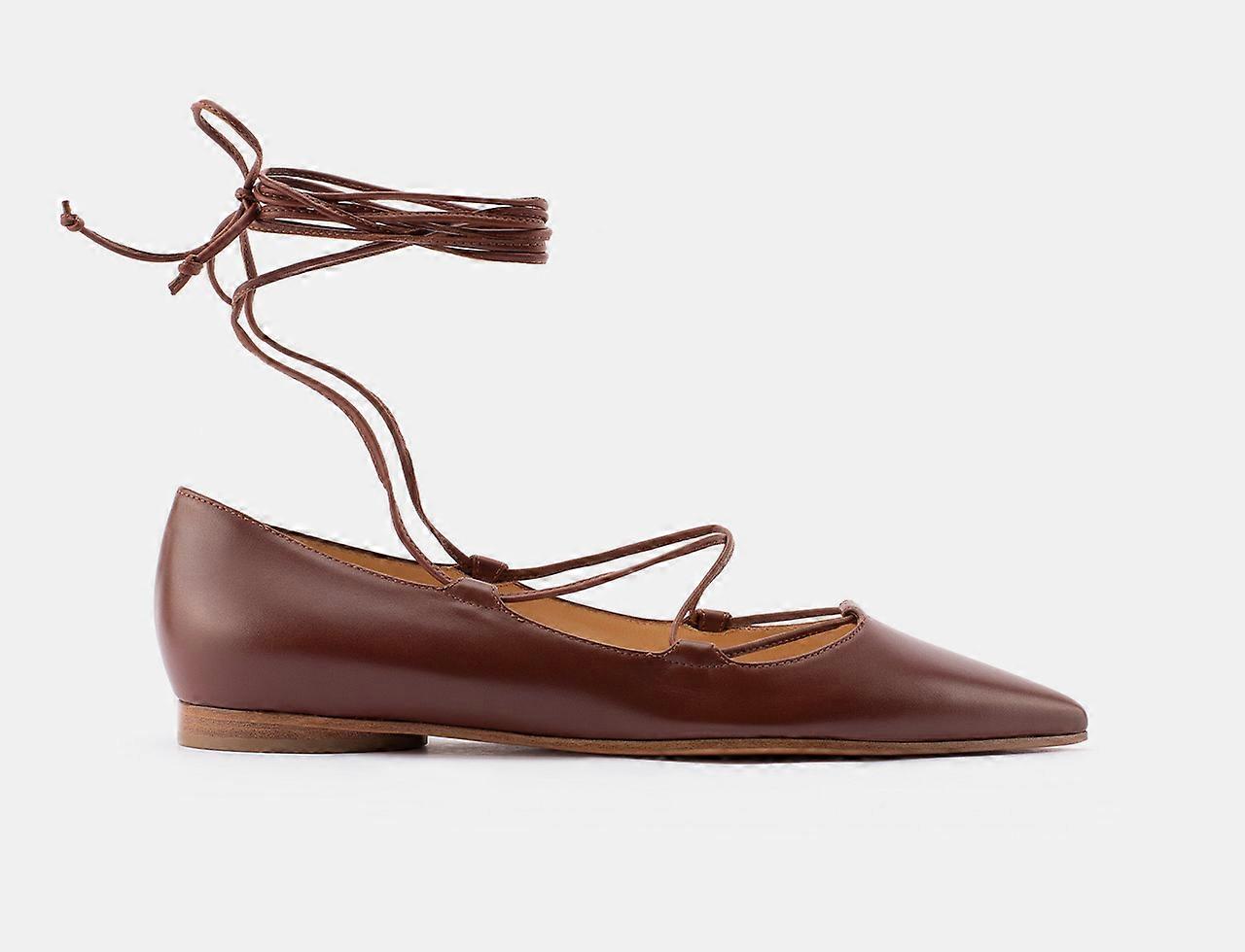 Via Della Paglia – Eva Pointed Gladiator Ballet Flats in Calfskin with Woven Detail