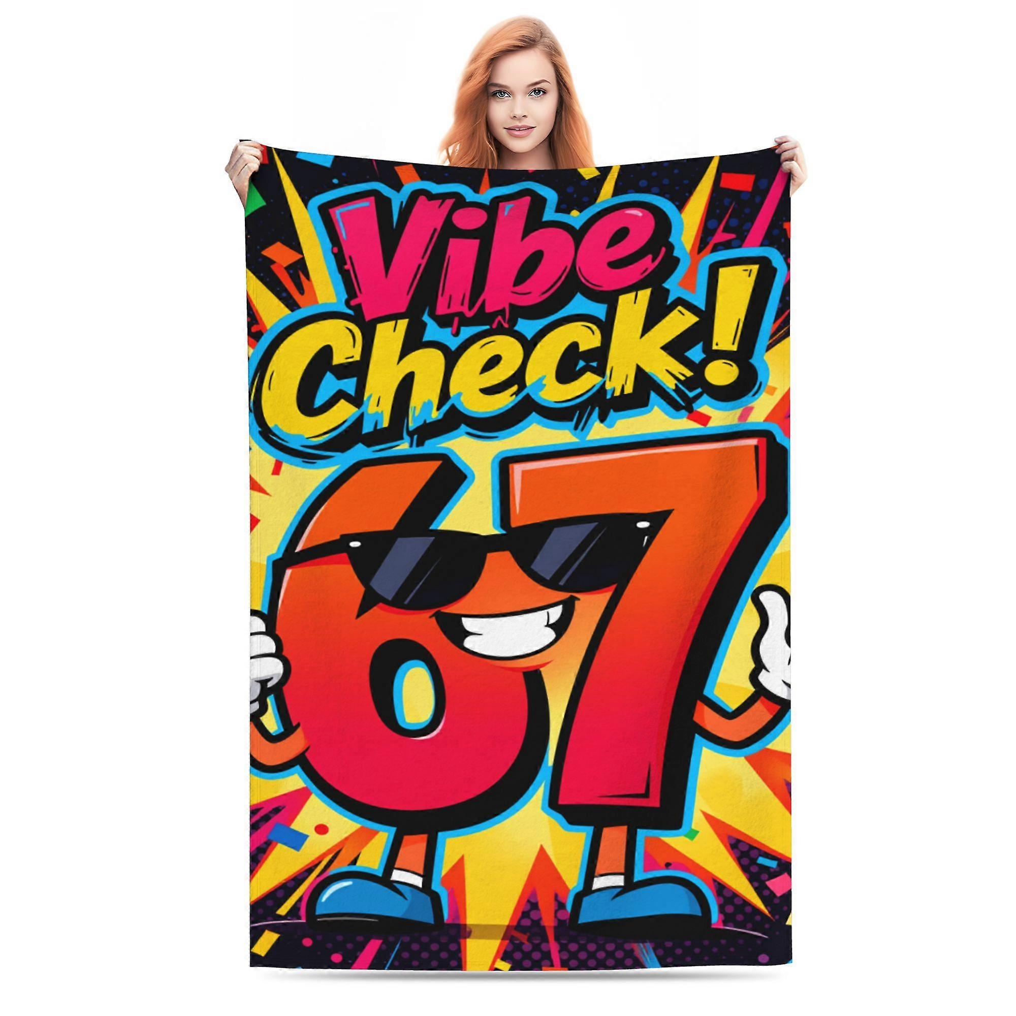Vibe Check 67 Graffiti Flannel Blanket - Soft Cozy Throw | Retro Fun Home Decor
