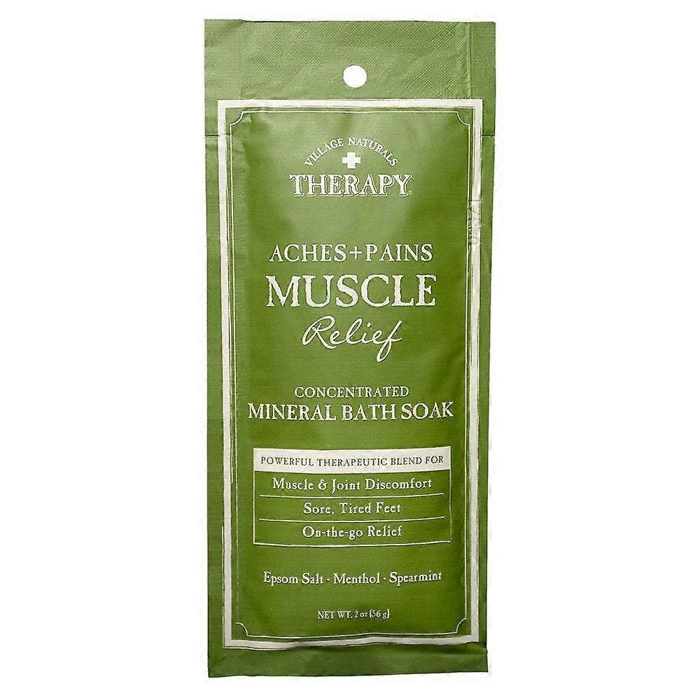 Revitalize and restore your skin by soaking in our powerful blend of essential oils and extracts including Eucalyptus, Wintergreen, and cooling Menthol. This moisturizing formula contains Shea Butter and Aloe to deeply hydrate and nourish the skin; meanwhile, Wintergreen and Menthol refreshingly tingle the skin and work to relax sore, aching muscles. Allow yourself to unwind and recharge as you experience relief from everyday aches, pains, and sore muscles in this revitalizing mineral soak. For full relaxation and revitalization, pair with the Aches and Pains foaming bath oil and body wash, and finish with Aches and Pains Muscle Relief Lotion. Whether you're sore from a tough workout or aching from a long day in the office, the Soothing Aches and Pains collection will provide the restoration your body needs. Heated Body Scrub Massage Oil Bar Feel the Difference with Village Naturals Therapy. With unique blends of powerful, therapeutic ingredients, you'll feel the difference Village Naturals Therapy products make the moment you step into a tub. Our line of bath soaks, body washes, and lotions are infused with essential oils, extracts, and soothing menthol to relax your body, soften your skin, and help you feel like yourself again. The concentrated formula means a little goes a long way. Two capfuls instantly fill the room with a relaxing aroma and provide fast-acting relief you can feel. Treat yourself to this revitalizing experience and let Village Naturals Therapy help ease your everyday ailments Village Naturals Therapy bath and body products give the benefits of essential oils and extracts to relax and recharge your mind and body. We invite you to try our entire line which includes body wash foam bath, body soak, shower bombs, heated body scrub, and massage oil bar. All of our products contain the highest quality ingredients for the most beneficial, relaxing, and therapeutic experience.Village Naturals Therapy Aches & Pains Muscle Relief Mineral Bath Soak 2 Oz.: Therapeutic Bath Soak derived from soothing essential oils Naturally relieves aches and pains with Eucalyptus, Wintergreen and Menthol Magnesium sulfate naturally draws toxins out of the body Pair with Village Naturals Body Lotion and Village Naturals Foaming Body Oil and Body Wash for ultimate muscle relief 2 oz single use packet Great for travel and on-the-go relieve 98% naturally derived Cruelty free and no animal testing Check out the rest of Village Naturals Therapy products for all your aches and pains:Foaming Bath Soak New