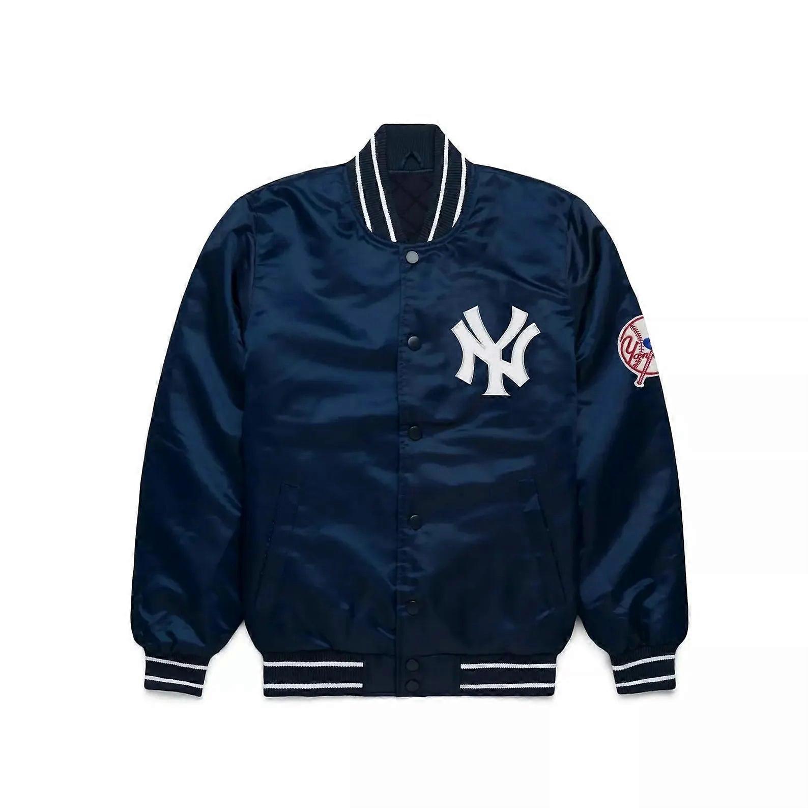 Vintage 90s Ny Yankees Satin Bomber Jacket - Navy Blue-040