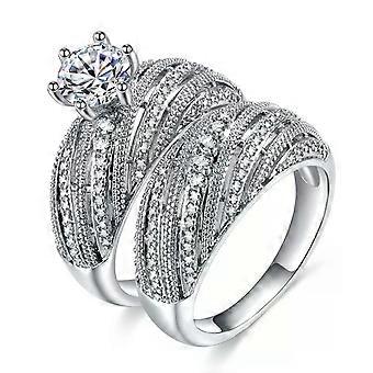 Vintage 925 Silver Diamond Wedding Rings Set for Women-Size 10