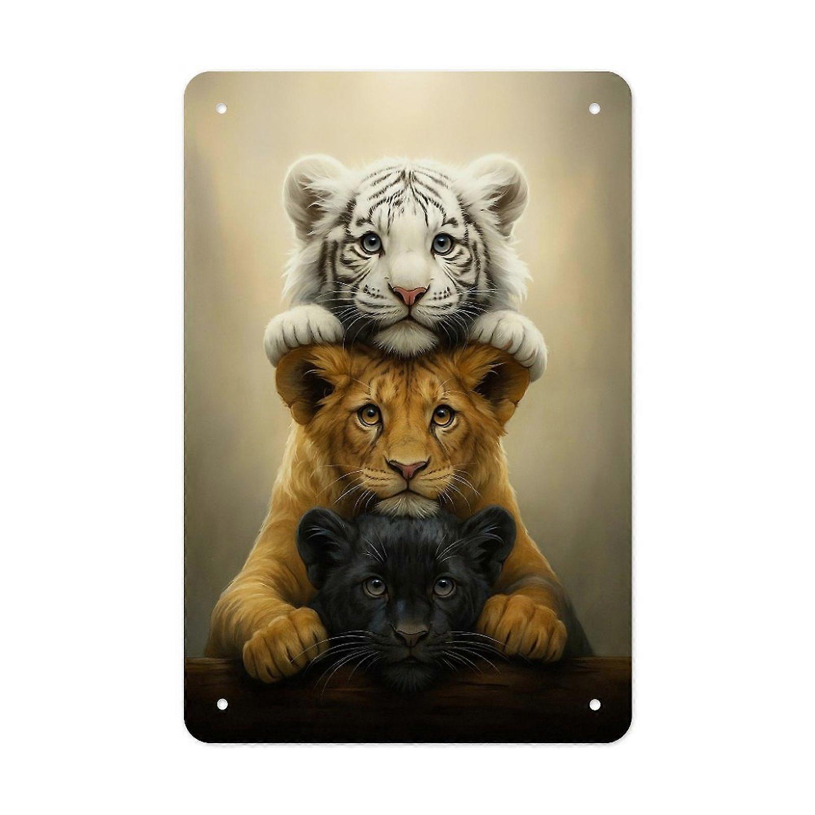 Vintage Animal Family Metal Tin Sign – Stacked Tiger Cubs Cute Art Wall Decor, Retro Nursery Home Wall Plaque